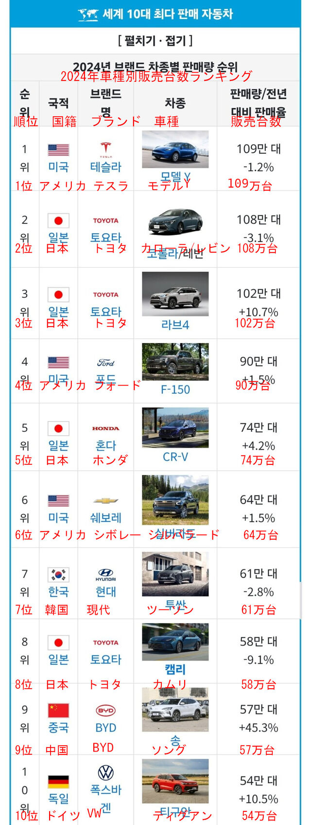 韓国人 「意外に」って言うけど世界で最も売れているメーカーはトヨタなのに